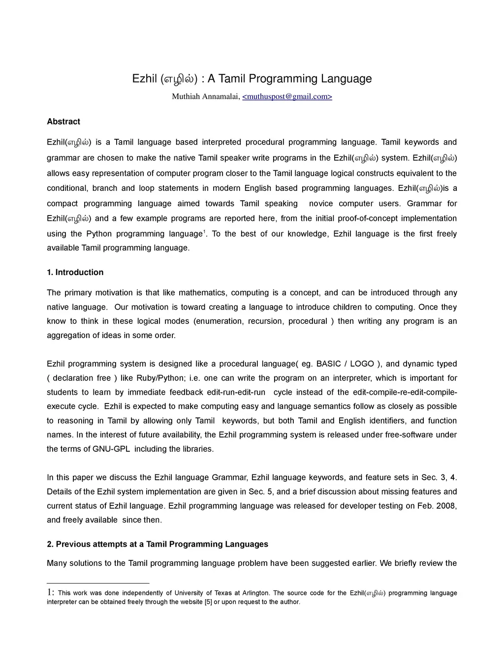 Ezhil: A Tamil Programming Language