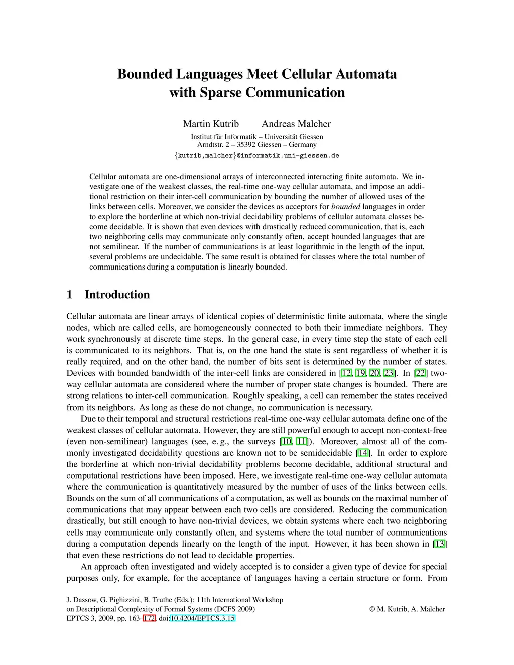 Bounded Languages Meet Cellular Automata with Sparse Communication