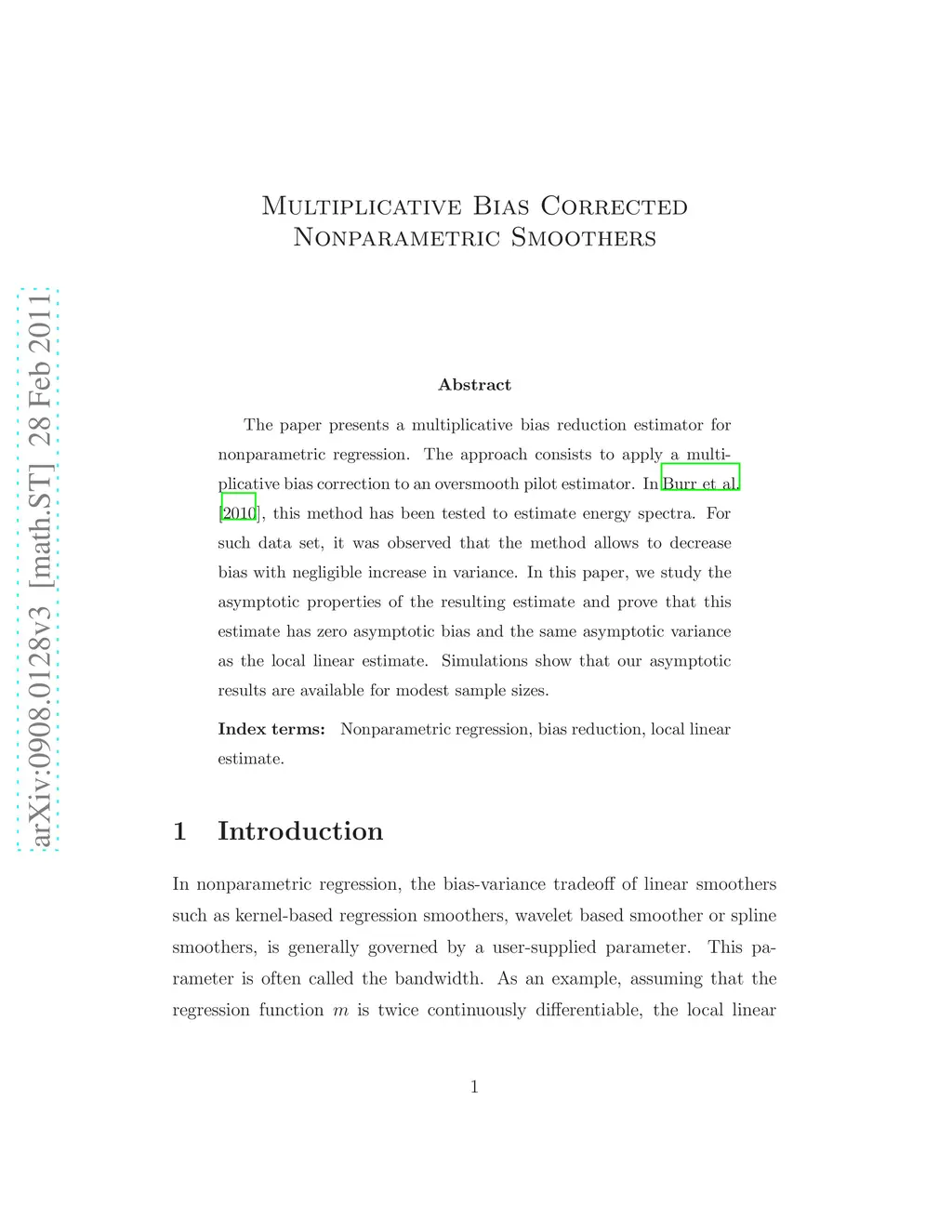 The paper presents a multiplicative bias reduction estimator for nonparametric regression. The approach consists to apply a multiplicative bias correction to an over-smooth pilot estimator. We study the asymptotic properties of the resulting estimate and prove that this estimate has zero asymptotic bias and the same asymptotic variance as the local linear estimate. Simulations show that our asymptotic results are available for modest sample sizes. We also illustrate the benefit of this new method on nuclear energy spectrum estimation.