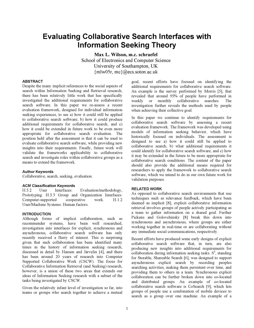 Evaluating Collaborative Search Interfaces with Information Seeking