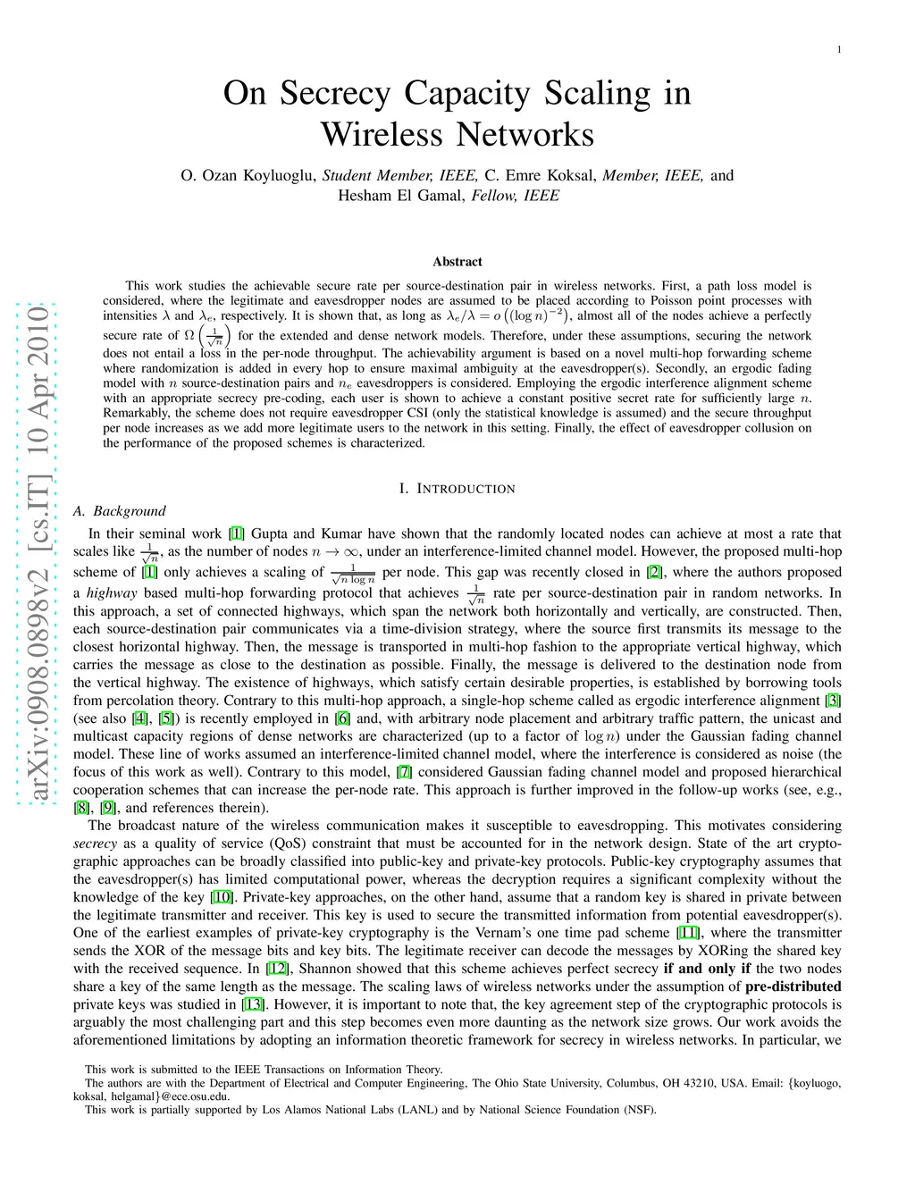 This work studies the achievable secure rate per source-destination pair in wireless networks. First, a path loss model is considered, where the legitimate and eavesdropper nodes are assumed to be placed according to Poisson point processes with intensities and , respectively. It is shown that, as long as , almost all of the nodes achieve a perfectly secure rate of for the extended and dense network models. Therefore, under these assumptions, securing the network does not entail a loss in the per-node throughput. The achievability argument is based on a novel multi-hop forwarding scheme where randomization is added in every hop to ensure maximal ambiguity at the eavesdropper(s). Secondly, an ergodic fading model with source-destination pairs and eavesdroppers is considered. Employing the ergodic interference alignment scheme with an appropriate secrecy pre-coding, each user is shown to achieve a constant positive secret rate for sufficiently large . Remarkably, the scheme does not require eavesdropper CSI (only the statistical knowledge is assumed) and the secure throughput per node increases as we add more legitimate users to the network in this setting. Finally, the effect of eavesdropper collusion on the performance of the proposed schemes is characterized.