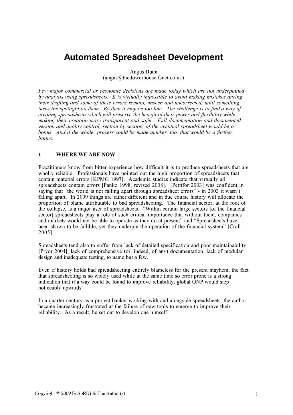 Few major commercial or economic decisions are made today which are not underpinned by analysis using spreadsheets. It is virtually impossible to avoid making mistakes during their drafting and some of these errors remain, unseen and uncorrected, until something turns the spotlight on them. By then it may be too late. The challenge is to find a way of creating spreadsheets which will preserve the benefit of their power and flexibility while making their creation more transparent and safer. Full documentation and documented version and quality control, section by section, of the eventual spreadsheet would be a bonus. And if the whole process could be made quicker, too, that would be a further bonus.
