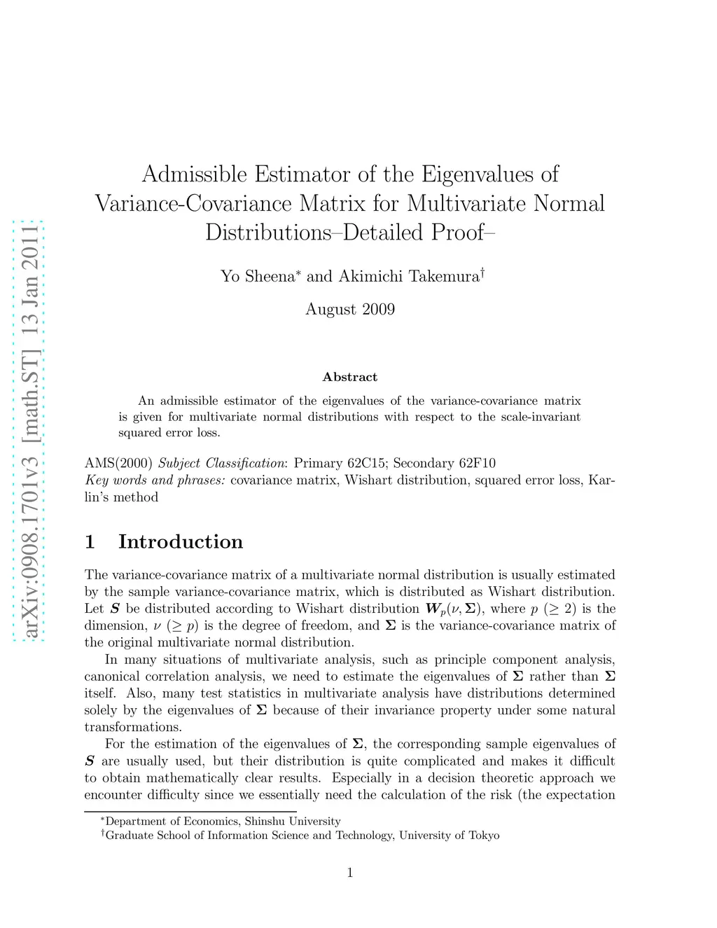 An admissible estimator of the eigenvalues of the variance-covariance matrix is given for multivariate normal distributions with respect to the scale-invariant squared error loss.