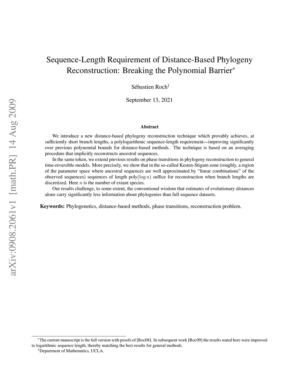 We introduce a new distance-based phylogeny reconstruction technique which provably achieves, at sufficiently short branch lengths, a polylogarithmic sequence-length requirement -- improving significantly over previous polynomial bounds for distance-based methods. The technique is based on an averaging procedure that implicitly reconstructs ancestral sequences. In the same token, we extend previous results on phase transitions in phylogeny reconstruction to general time-reversible models. More precisely, we show that in the so-called Kesten-Stigum zone (roughly, a region of the parameter space where ancestral sequences are well approximated by ``linear combinations'' of the observed sequences) sequences of length suffice for reconstruction when branch lengths are discretized. Here is the number of extant species. Our results challenge, to some extent, the conventional wisdom that estimates of evolutionary distances alone carry significantly less information about phylogenies than full sequence datasets.