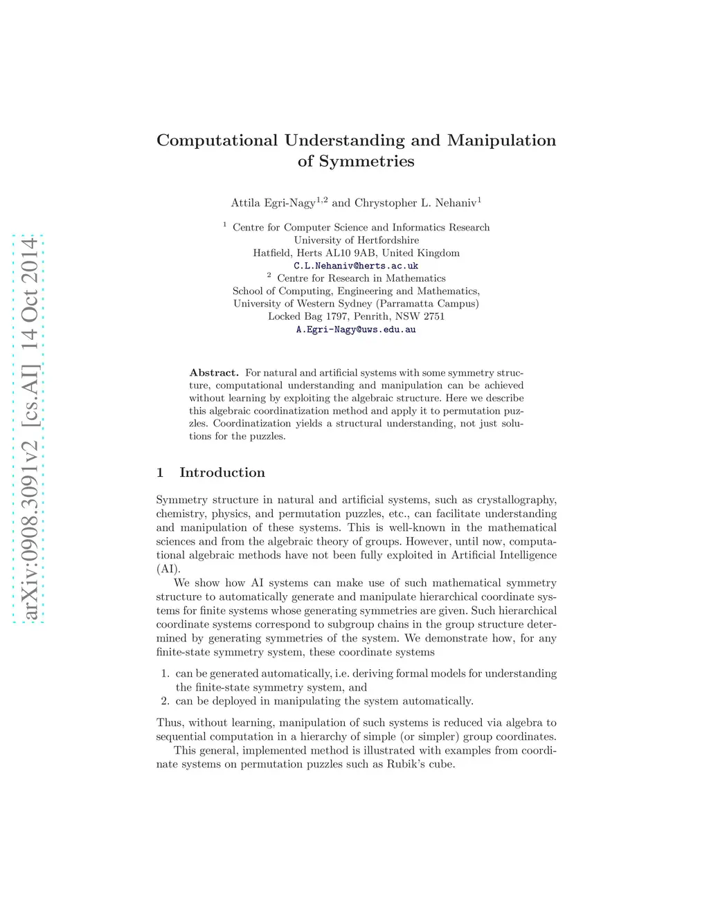 For natural and artificial systems with some symmetry structure, computational understanding and manipulation can be achieved without learning by exploiting the algebraic structure. Here we describe this algebraic coordinatization method and apply it to permutation puzzles. Coordinatization yields a structural understanding, not just solutions for the puzzles.
