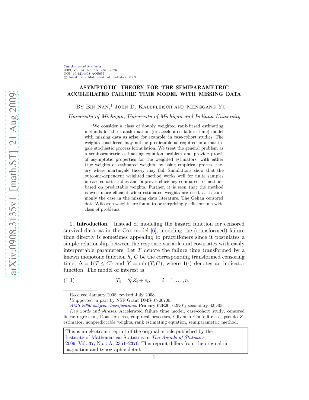 Asymptotic theory for the semiparametric accelerated failure time model