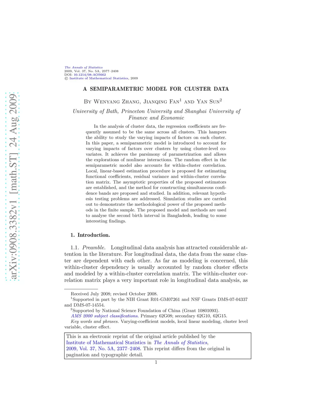 In the analysis of cluster data, the regression coefficients are frequently assumed to be the same across all clusters. This hampers the ability to study the varying impacts of factors on each cluster. In this paper, a semiparametric model is introduced to account for varying impacts of factors over clusters by using cluster-level covariates. It achieves the parsimony of parametrization and allows the explorations of nonlinear interactions. The random effect in the semiparametric model also accounts for within-cluster correlation. Local, linear-based estimation procedure is proposed for estimating functional coefficients, residual variance and within-cluster correlation matrix. The asymptotic properties of the proposed estimators are established, and the method for constructing simultaneous confidence bands are proposed and studied. In addition, relevant hypothesis testing problems are addressed. Simulation studies are carried out to demonstrate the methodological power of the proposed methods in the finite sample. The proposed model and methods are used to analyse the second birth interval in Bangladesh, leading to some interesting findings.