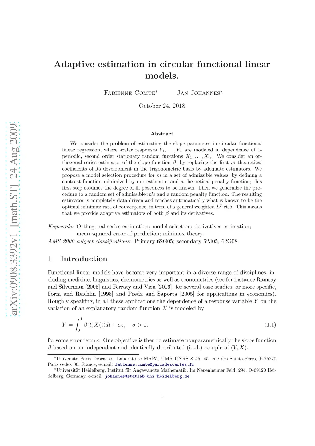 We consider the problem of estimating the slope parameter in circular functional linear regression, where scalar responses Y1,...,Yn are modeled in dependence of 1-periodic, second order stationary random functions X1,...,Xn. We consider an orthogonal series estimator of the slope function, by replacing the first m theoretical coefficients of its development in the trigonometric basis by adequate estimators. Wepropose a model selection procedure for m in a set of admissible values, by defining a contrast function minimized by our estimator and a theoretical penalty function; this first step assumes the degree of ill posedness to be known. Then we generalize the procedure to a random set of admissible m's and a random penalty function. The resulting estimator is completely data driven and reaches automatically what is known to be the optimal minimax rate of convergence, in term of a general weighted L2-risk. This means that we provide adaptive estimators of both the slope function and its derivatives.