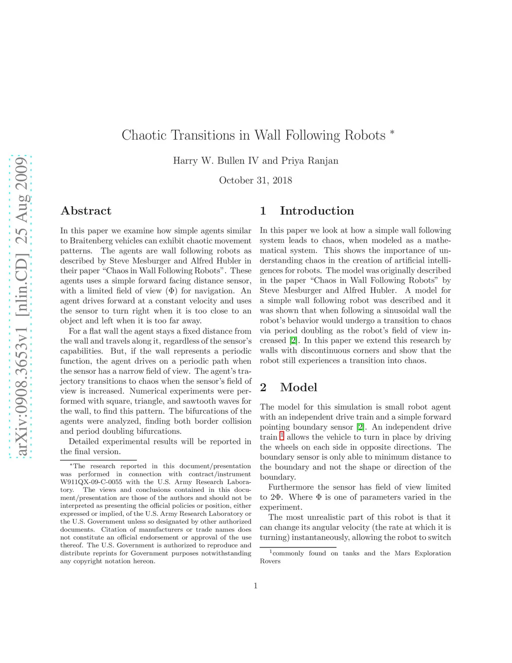 In this paper we examine how simple agents similar to Braitenberg vehicles can exhibit chaotic movement patterns. The agents are wall following robots as described by Steve Mesburger and Alfred Hubler in their paper "Chaos in Wall Following Robots". These agents uses a simple forward facing distance sensor, with a limited field of view "phi" for navigation. An agent drives forward at a constant velocity and uses the sensor to turn right when it is too close to an object and left when it is too far away. For a flat wall the agent stays a fixed distance from the wall and travels along it, regardless of the sensor's capabilities. But, if the wall represents a periodic function, the agent drives on a periodic path when the sensor has a narrow field of view. The agent's trajectory transitions to chaos when the sensor's field of view is increased. Numerical experiments were performed with square, triangle, and sawtooth waves for the wall, to find this pattern. The bifurcations of the agents were analyzed, finding both border collision and period doubling bifurcations. Detailed experimental results will be reported separately.