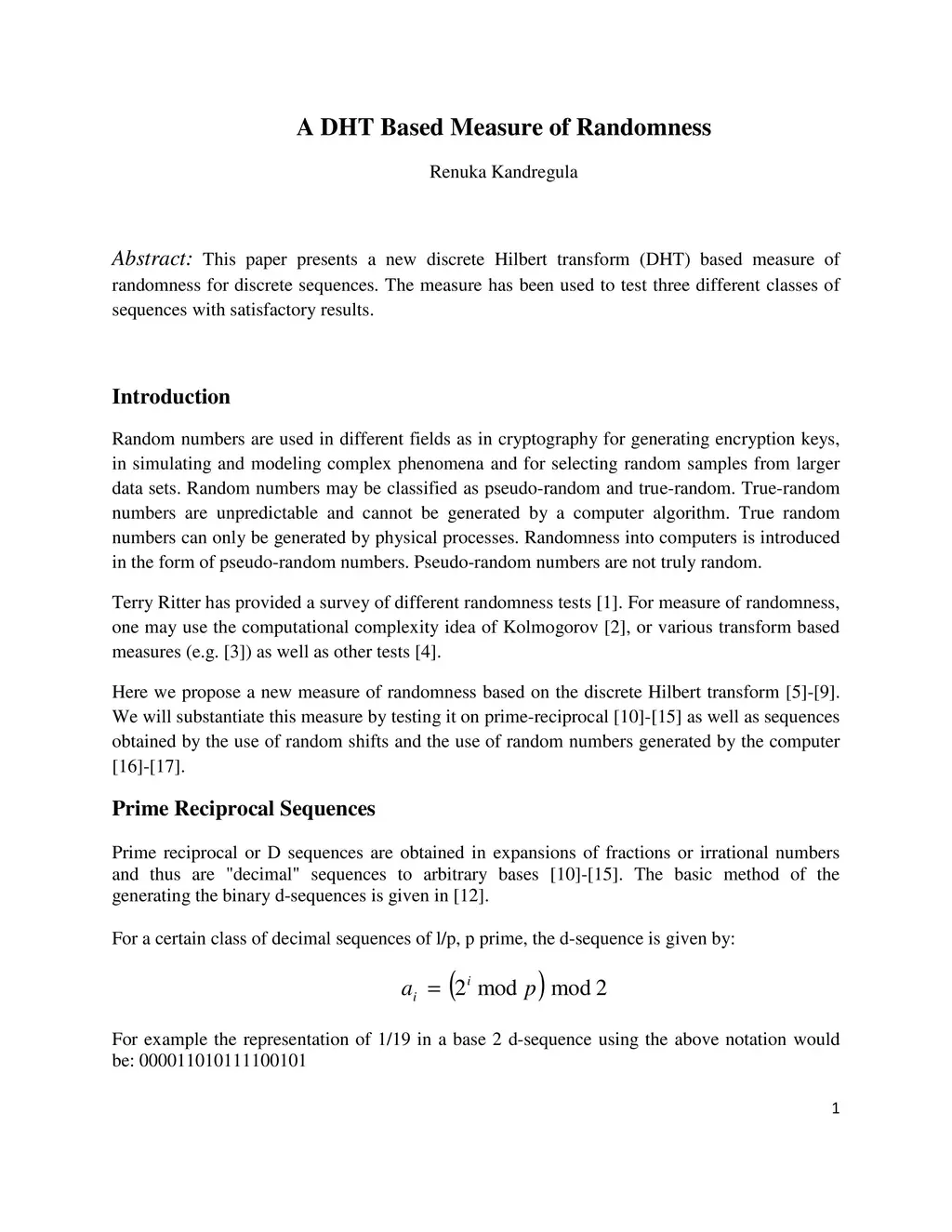This paper presents a new discrete Hilbert transform (DHT) based measure of randomness for discrete sequences. The measure has been used to test three different classes of sequences with satisfactory results.