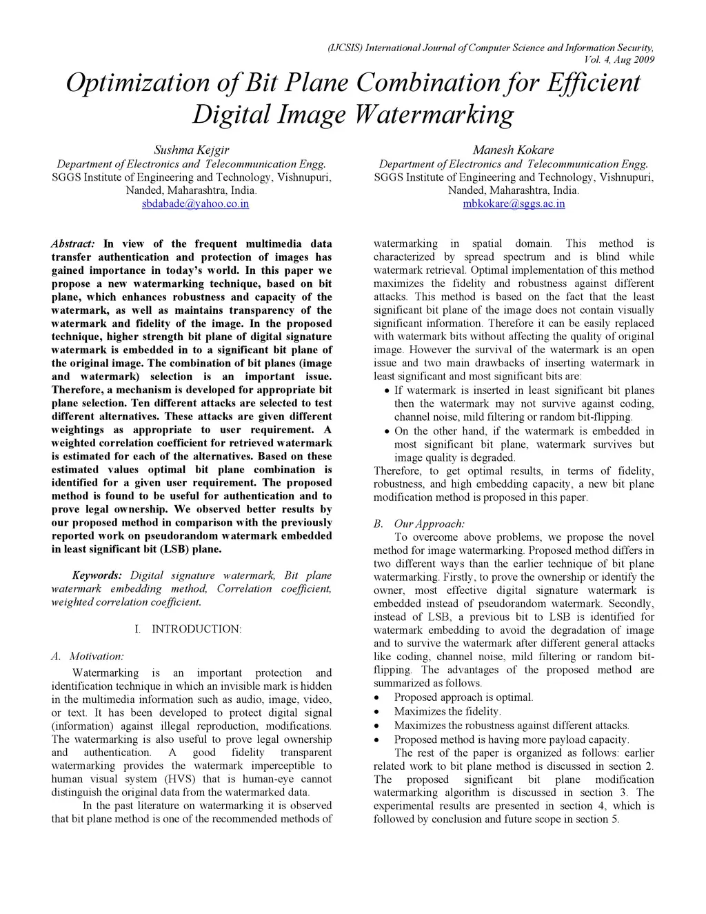 Optimization of Bit Plane Combination for Efficient Digital Image