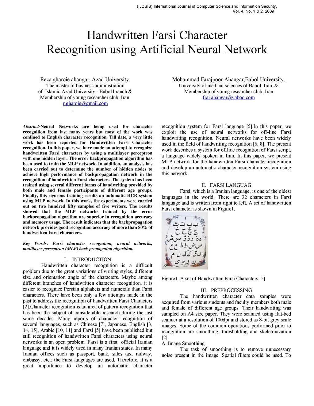 Handwritten Farsi Character Recognition using Artificial Neural Network