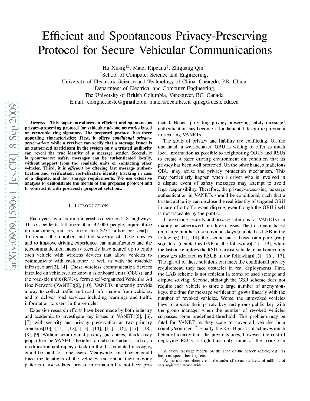 Efficient and Spontaneous Privacy-Preserving Protocol for Secure