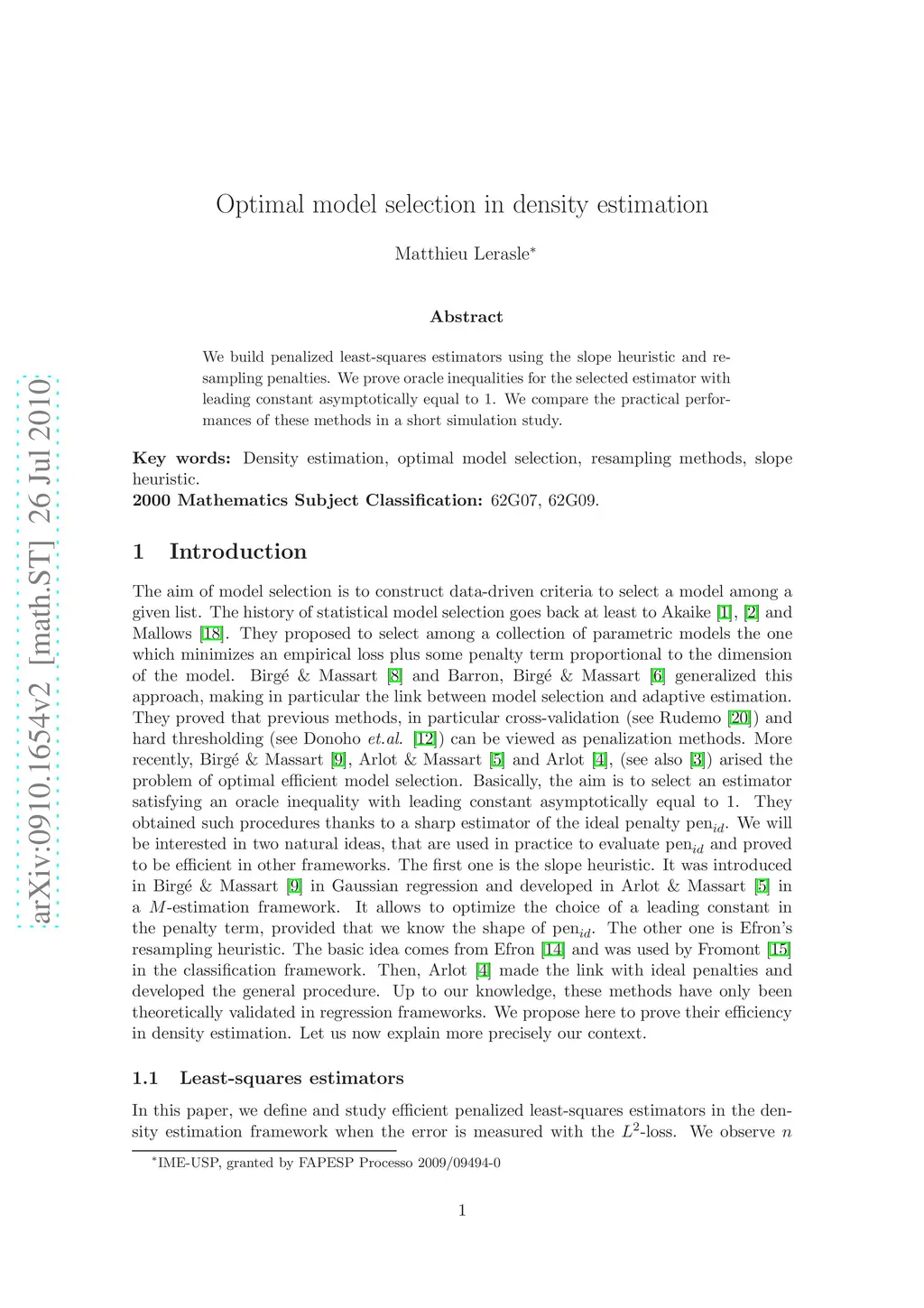 We build penalized least-squares estimators using the slope heuristic and resampling penalties. We prove oracle inequalities for the selected estimator with leading constant asymptotically equal to 1. We compare the practical performances of these methods in a short simulation study.
