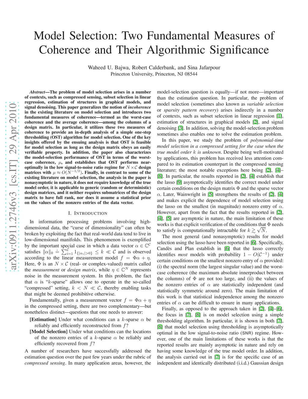 Model Selection: Two Fundamental Measures of Coherence and Their