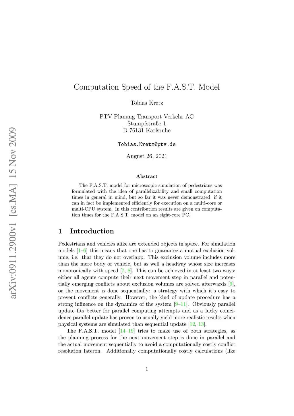 Computation Speed of the F.A.S.T. Model