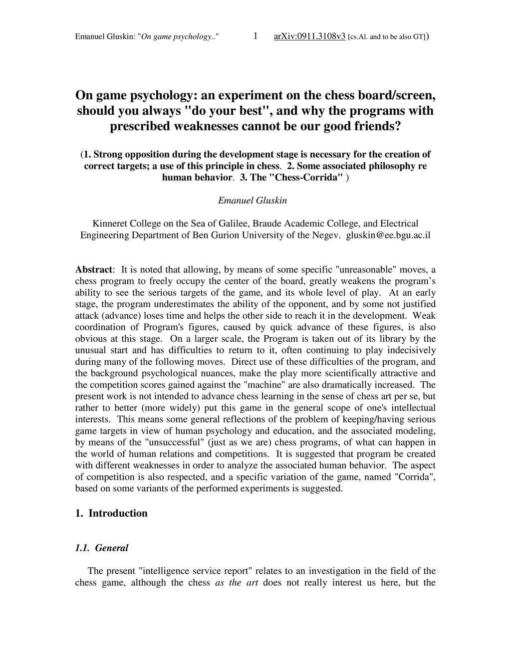 It is noted that some unusual moves against a strong chess program greatly weaken its ability to see the serious targets of the game, and its whole level of play... It is suggested to create programs with different weaknesses in order to analyze similar human behavior. Finally, a new version of chess, "Chess Corrida" is suggested.