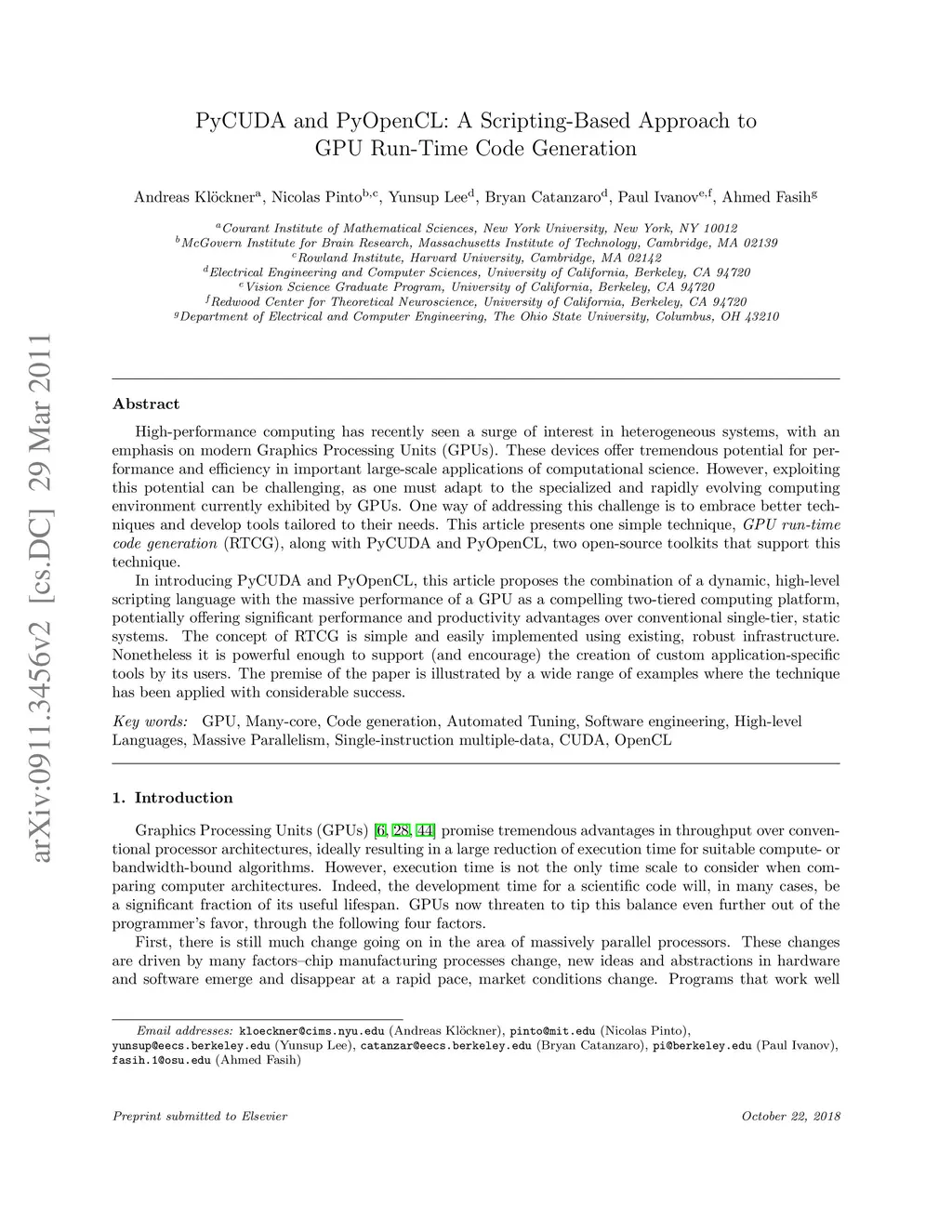 PyCUDA and PyOpenCL: A Scripting-Based Approach to GPU Run-Time Code