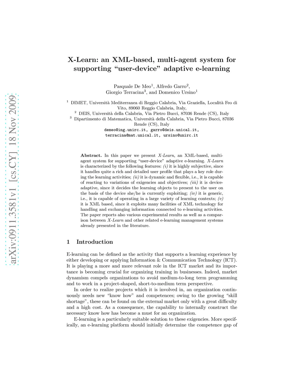 X-Learn: An XML-Based, Multi-agent System for Supporting "User-Device"