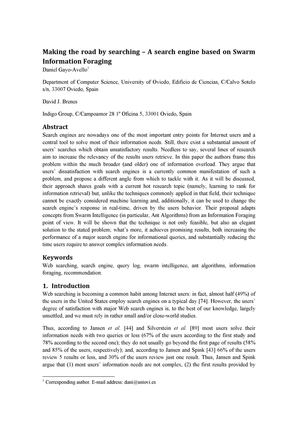 Making the road by searching - A search engine based on Swarm