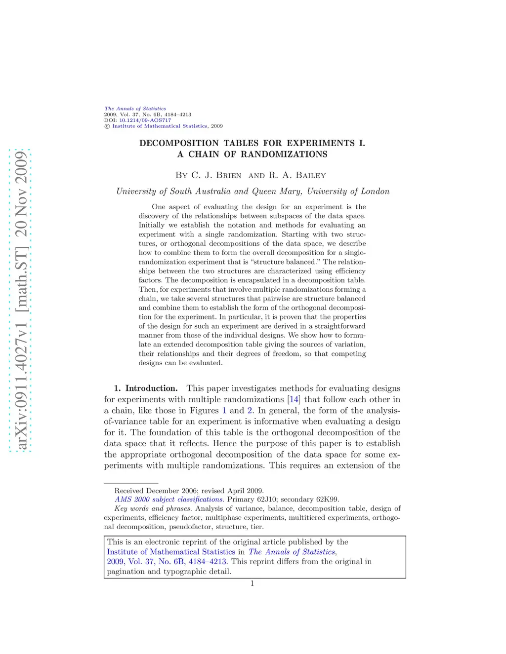 One aspect of evaluating the design for an experiment is the discovery of the relationships between subspaces of the data space. Initially we establish the notation and methods for evaluating an experiment with a single randomization. Starting with two structures, or orthogonal decompositions of the data space, we describe how to combine them to form the overall decomposition for a single-randomization experiment that is ``structure balanced.'' The relationships between the two structures are characterized using efficiency factors. The decomposition is encapsulated in a decomposition table. Then, for experiments that involve multiple randomizations forming a chain, we take several structures that pairwise are structure balanced and combine them to establish the form of the orthogonal decomposition for the experiment. In particular, it is proven that the properties of the design for such an experiment are derived in a straightforward manner from those of the individual designs. We show how to formulate an extended decomposition table giving the sources of variation, their relationships and their degrees of freedom, so that competing designs can be evaluated.