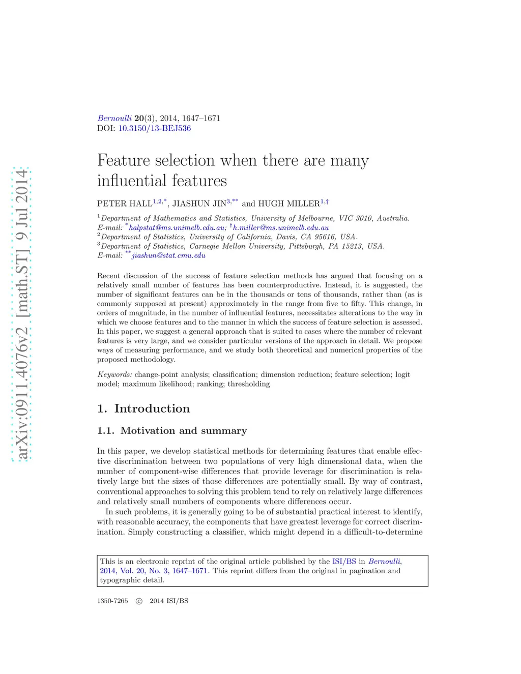 Recent discussion of the success of feature selection methods has argued that focusing on a relatively small number of features has been counterproductive. Instead, it is suggested, the number of significant features can be in the thousands or tens of thousands, rather than (as is commonly supposed at present) approximately in the range from five to fifty. This change, in orders of magnitude, in the number of influential features, necessitates alterations to the way in which we choose features and to the manner in which the success of feature selection is assessed. In this paper, we suggest a general approach that is suited to cases where the number of relevant features is very large, and we consider particular versions of the approach in detail. We propose ways of measuring performance, and we study both theoretical and numerical properties of the proposed methodology.