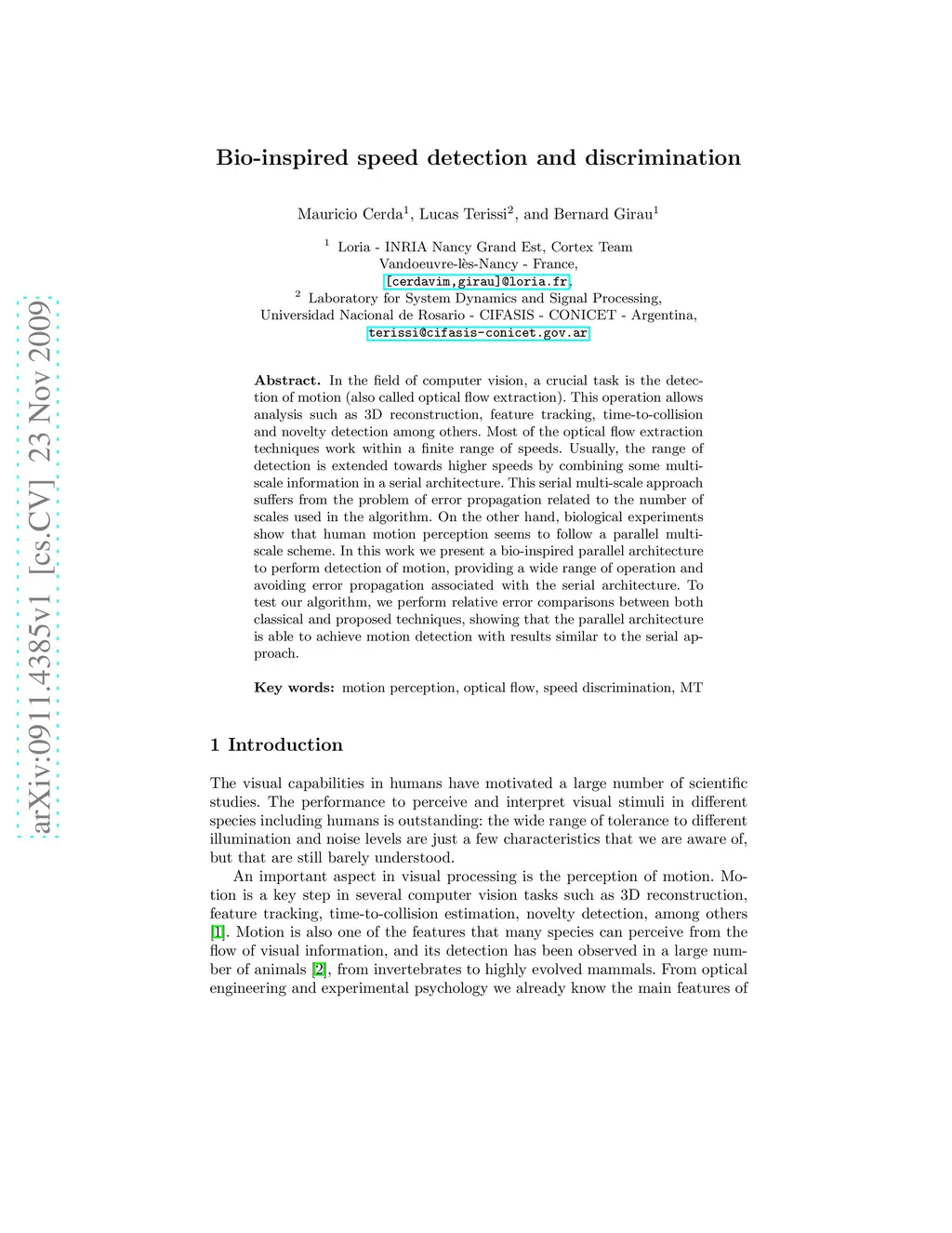 Bio-inspired speed detection and discrimination