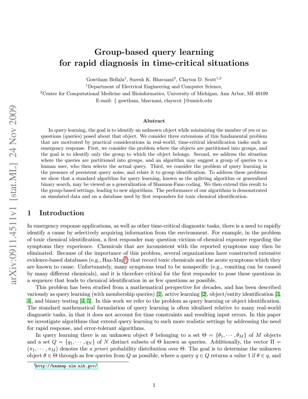In query learning, the goal is to identify an unknown object while minimizing the number of "yes or no" questions (queries) posed about that object. We consider three extensions of this fundamental problem that are motivated by practical considerations in real-world, time-critical identification tasks such as emergency response. First, we consider the problem where the objects are partitioned into groups, and the goal is to identify only the group to which the object belongs. Second, we address the situation where the queries are partitioned into groups, and an algorithm may suggest a group of queries to a human user, who then selects the actual query. Third, we consider the problem of query learning in the presence of persistent query noise, and relate it to group identification. To address these problems we show that a standard algorithm for query learning, known as the splitting algorithm or generalized binary search, may be viewed as a generalization of Shannon-Fano coding. We then extend this result to the group-based settings, leading to new algorithms. The performance of our algorithms is demonstrated on simulated data and on a database used by first responders for toxic chemical identification.
