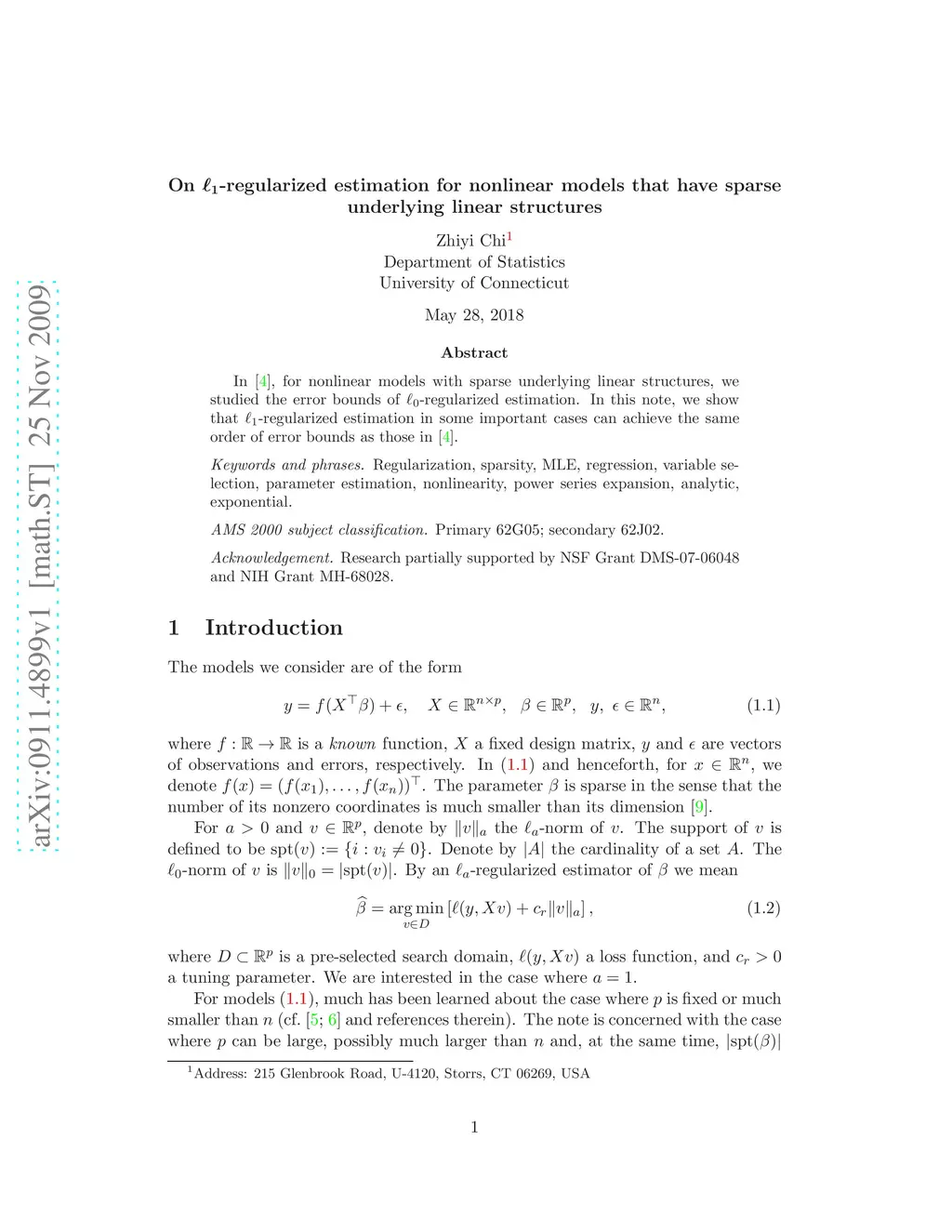 On -regularized estimation for nonlinear models that have sparse