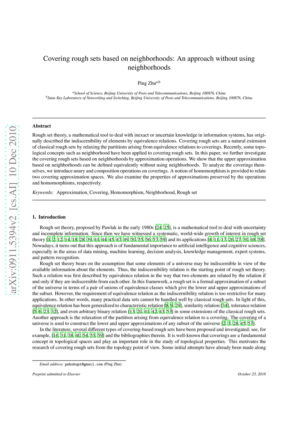 Rough set theory, a mathematical tool to deal with inexact or uncertain knowledge in information systems, has originally described the indiscernibility of elements by equivalence relations. Covering rough sets are a natural extension of classical rough sets by relaxing the partitions arising from equivalence relations to coverings. Recently, some topological concepts such as neighborhood have been applied to covering rough sets. In this paper, we further investigate the covering rough sets based on neighborhoods by approximation operations. We show that the upper approximation based on neighborhoods can be defined equivalently without using neighborhoods. To analyze the coverings themselves, we introduce unary and composition operations on coverings. A notion of homomorphismis provided to relate two covering approximation spaces. We also examine the properties of approximations preserved by the operations and homomorphisms, respectively.
