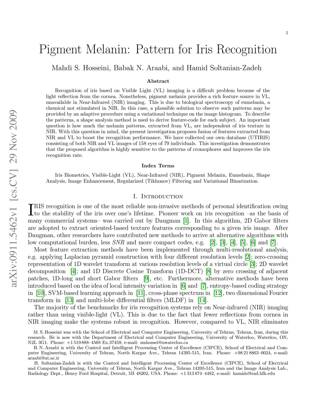 Pigment Melanin: Pattern for Iris Recognition
