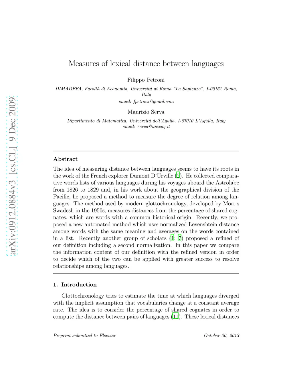 The idea of measuring distance between languages seems to have its roots in the work of the French explorer Dumont DÚrville \cite{Urv}. He collected comparative words lists of various languages during his voyages aboard the Astrolabe from 1826 to 1829 and, in his work about the geographical division of the Pacific, he proposed a method to measure the degree of relation among languages. The method used by modern glottochronology, developed by Morris Swadesh in the 1950s, measures distances from the percentage of shared cognates, which are words with a common historical origin. Recently, we proposed a new automated method which uses normalized Levenshtein distance among words with the same meaning and averages on the words contained in a list. Recently another group of scholars \cite{Bak, Hol} proposed a refined of our definition including a second normalization. In this paper we compare the information content of our definition with the refined version in order to decide which of the two can be applied with greater success to resolve relationships among languages.
