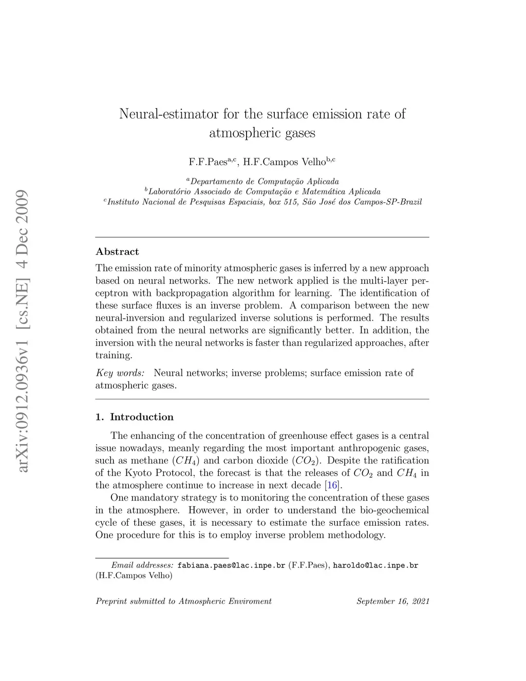 The emission rate of minority atmospheric gases is inferred by a new approach based on neural networks. The neural network applied is the multi-layer perceptron with backpropagation algorithm for learning. The identification of these surface fluxes is an inverse problem. A comparison between the new neural-inversion and regularized inverse solution id performed. The results obtained from the neural networks are significantly better. In addition, the inversion with the neural netwroks is fster than regularized approaches, after training.