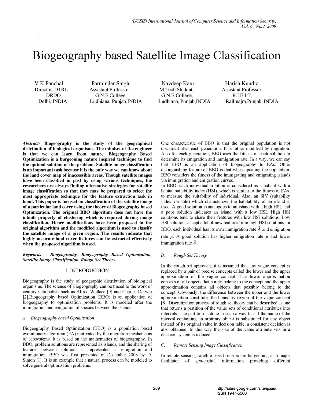Biogeography based Satellite Image Classification