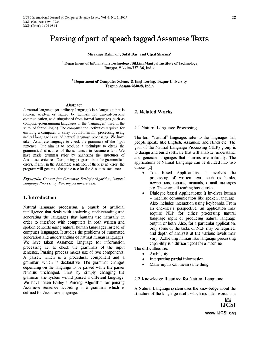 A natural language (or ordinary language) is a language that is spoken, written, or signed by humans for general-purpose communication, as distinguished from formal languages (such as computer-programming languages or the "languages" used in the study of formal logic). The computational activities required for enabling a computer to carry out information processing using natural language is called natural language processing. We have taken Assamese language to check the grammars of the input sentence. Our aim is to produce a technique to check the grammatical structures of the sentences in Assamese text. We have made grammar rules by analyzing the structures of Assamese sentences. Our parsing program finds the grammatical errors, if any, in the Assamese sentence. If there is no error, the program will generate the parse tree for the Assamese sentence