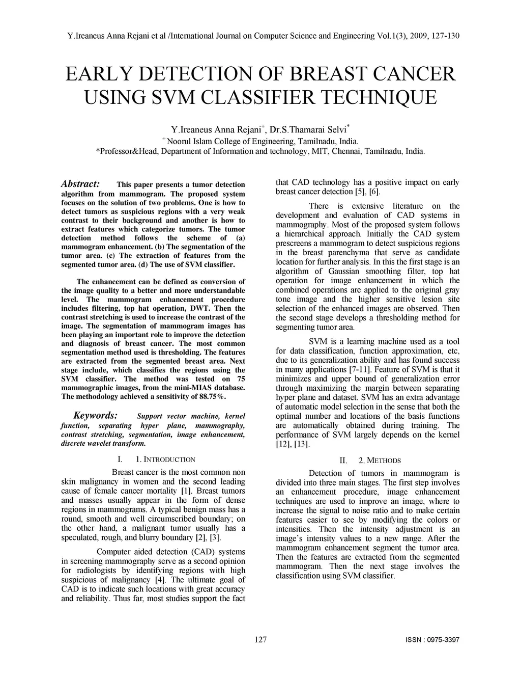 Early Detection of Breast Cancer using SVM Classifier Technique