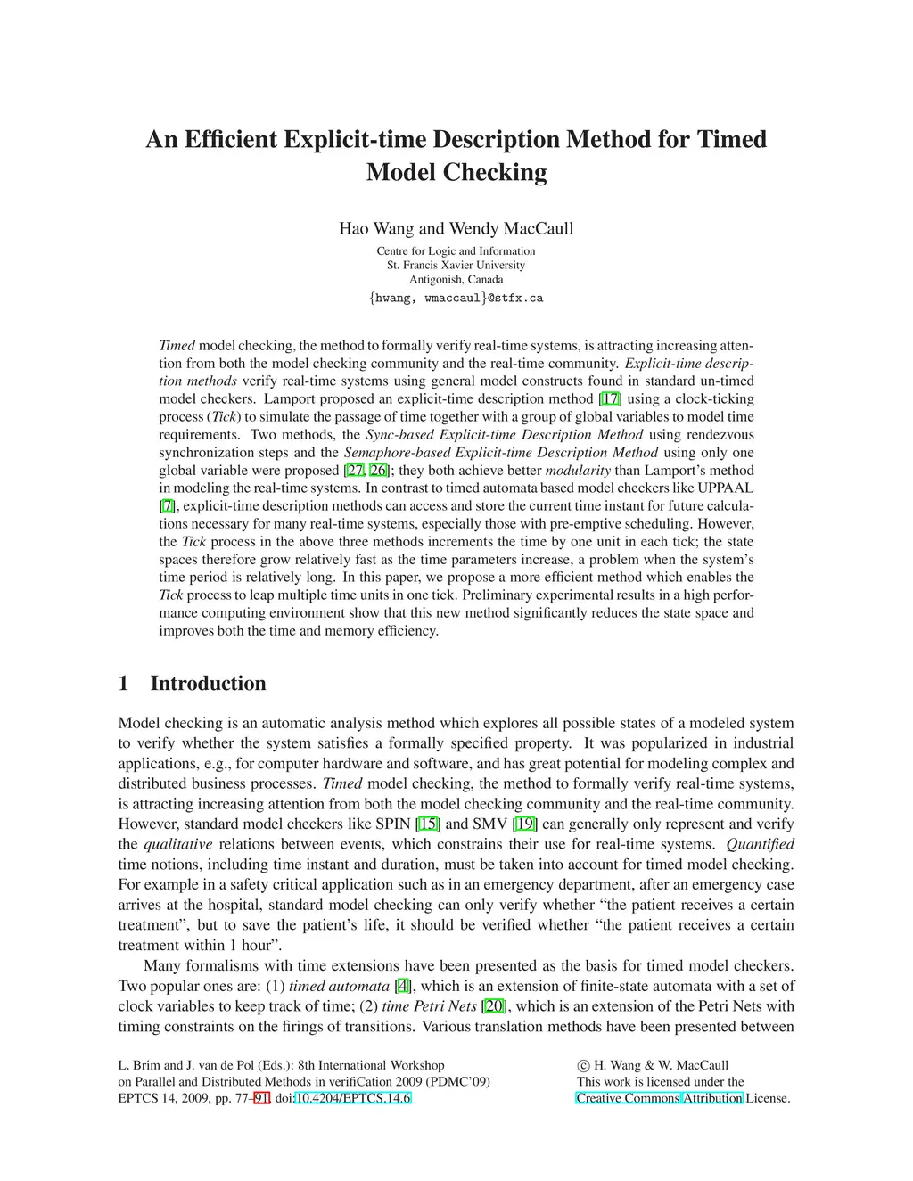Timed model checking, the method to formally verify real-time systems, is attracting increasing attention from both the model checking community and the real-time community. Explicit-time description methods verify real-time systems using general model constructs found in standard un-timed model checkers. Lamport proposed an explicit-time description method using a clock-ticking process (Tick) to simulate the passage of time together with a group of global variables to model time requirements. Two methods, the Sync-based Explicit-time Description Method using rendezvous synchronization steps and the Semaphore-based Explicit-time Description Method using only one global variable were proposed; they both achieve better modularity than Lamport's method in modeling the real-time systems. In contrast to timed automata based model checkers like UPPAAL, explicit-time description methods can access and store the current time instant for future calculations necessary for many real-time systems, especially those with pre-emptive scheduling. However, the Tick process in the above three methods increments the time by one unit in each tick; the state spaces therefore grow relatively fast as the time parameters increase, a problem when the system's time period is relatively long. In this paper, we propose a more efficient method which enables the Tick process to leap multiple time units in one tick. Preliminary experimental results in a high performance computing environment show that this new method significantly reduces the state space and improves both the time and memory efficiency.