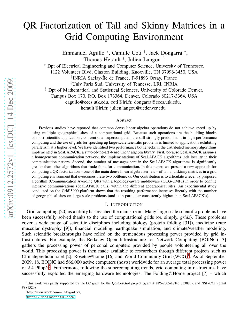 QR Factorization of Tall and Skinny Matrices in a Grid Computing