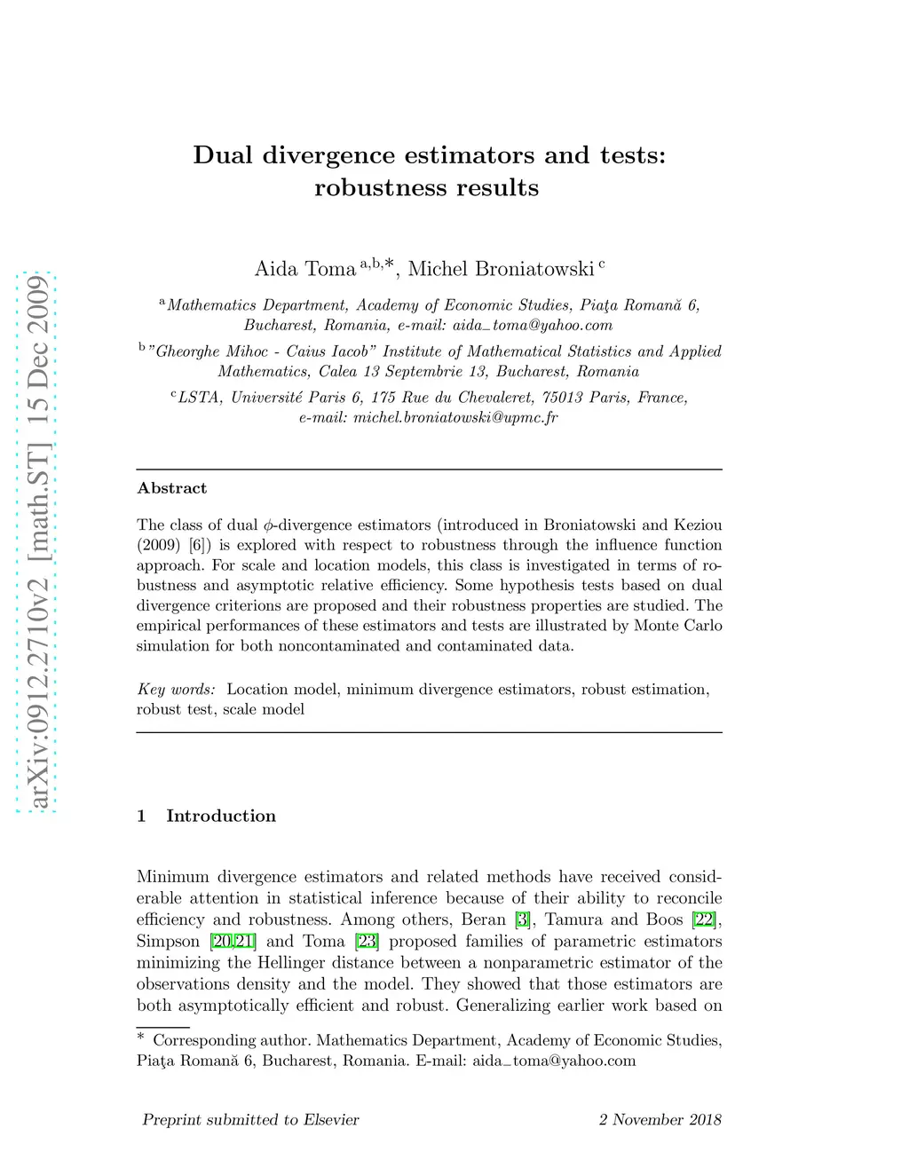 The class of dual -divergence estimators (introduced in Broniatowski and Keziou (2009) is explored with respect to robustness through the influence function approach. For scale and location models, this class is investigated in terms of robustness and asymptotic relative efficiency. Some hypothesis tests based on dual divergence criterions are proposed and their robustness properties are studied. The empirical performances of these estimators and tests are illustrated by Monte Carlo simulation for both noncontaminated and contaminated data.