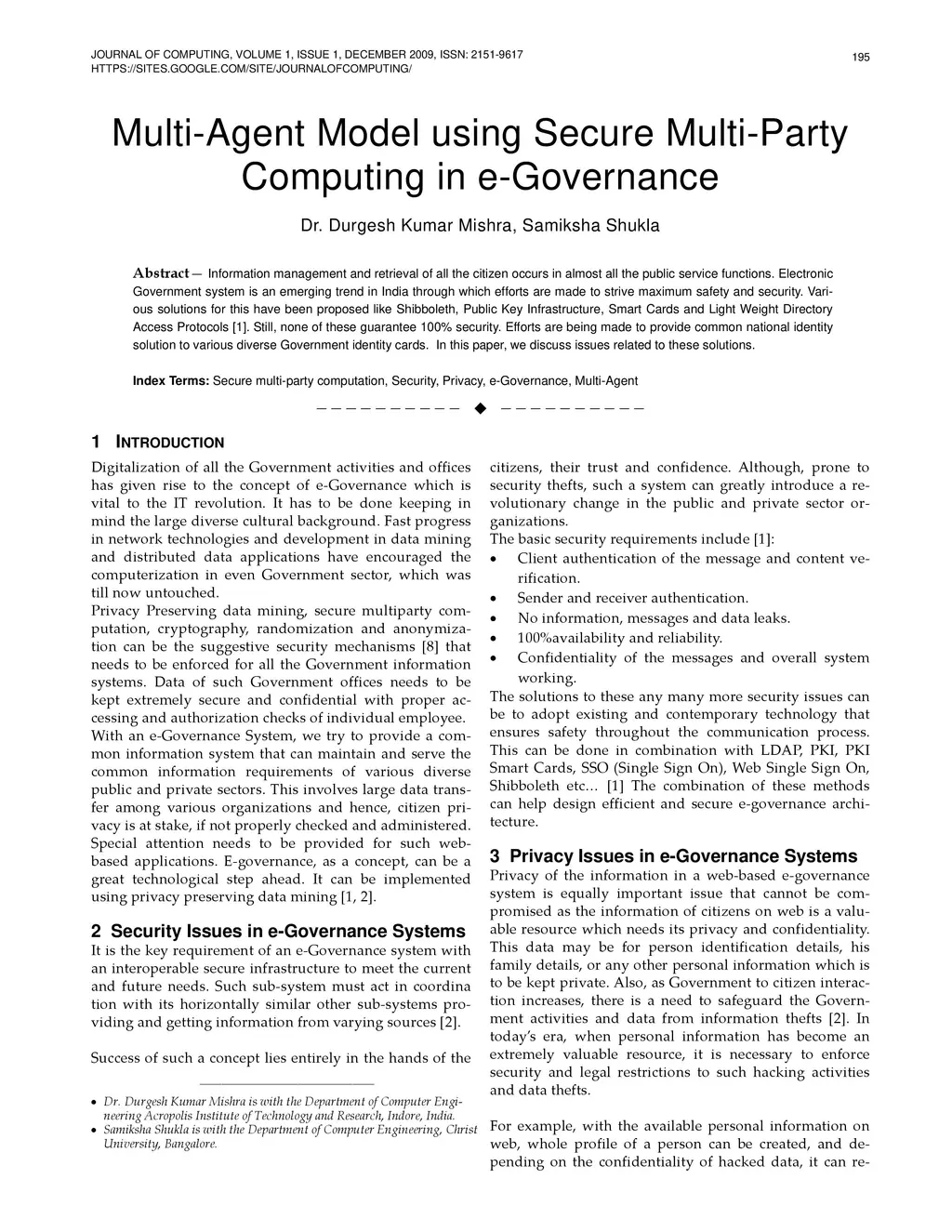 Multi-Agent Model using Secure Multi-Party Computing in e-Governance