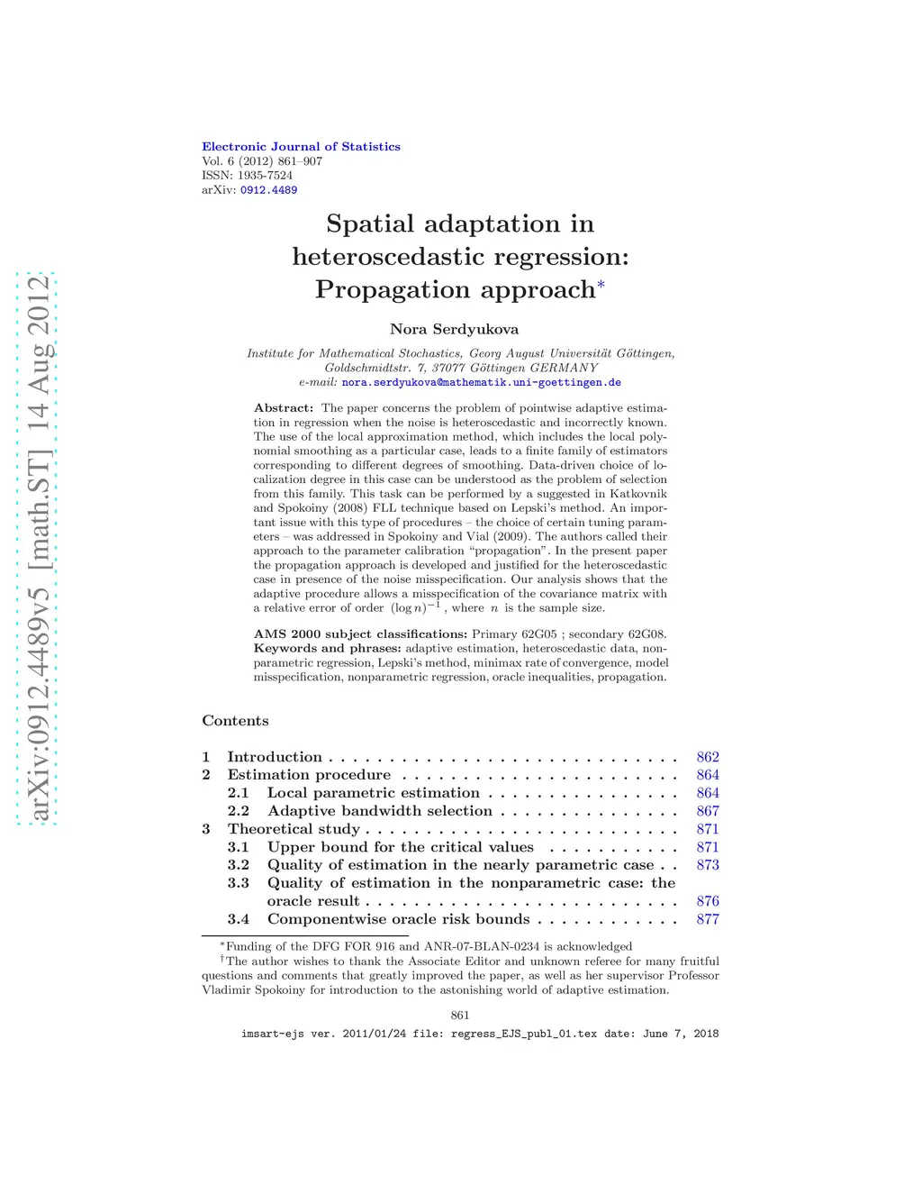 Spatial adaptation in heteroscedastic regression: Propagation approach