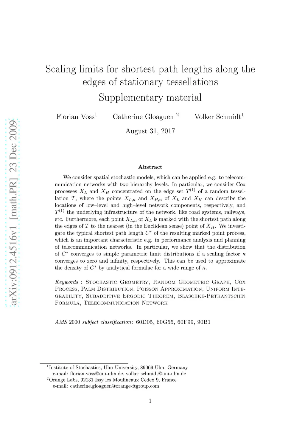 We consider spatial stochastic models, which can be applied e.g. to telecommunication networks with two hierarchy levels. In particular, we consider two Cox processes concentrated on the edge set of a random tessellation, where the points can describe the locations of low-level and high-level network components, respectively, and the edge set the underlying infrastructure of the network, like road systems, railways, etc. Furthermore, each low-level component is marked with the shortest path along the edge set to the nearest high-level component. We investigate the typical shortest path length of the resulting marked point process, which is an important characteristic e.g. in performance analysis and planning of telecommunication networks. In particular, we show that its distribution converges to simple parametric limit distributions if a certain scaling factor converges to zero and infinity, respectively. This can be used to approximate the density of the typical shortest path length by analytical formulae.
