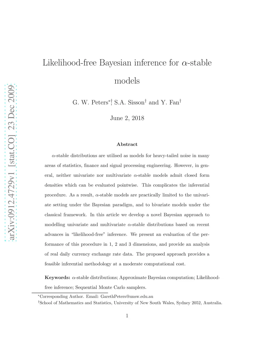 -stable distributions are utilised as models for heavy-tailed noise in many areas of statistics, finance and signal processing engineering. However, in general, neither univariate nor multivariate -stable models admit closed form densities which can be evaluated pointwise. This complicates the inferential procedure. As a result, -stable models are practically limited to the univariate setting under the Bayesian paradigm, and to bivariate models under the classical framework. In this article we develop a novel Bayesian approach to modelling univariate and multivariate -stable distributions based on recent advances in "likelihood-free" inference. We present an evaluation of the performance of this procedure in 1, 2 and 3 dimensions, and provide an analysis of real daily currency exchange rate data. The proposed approach provides a feasible inferential methodology at a moderate computational cost.
