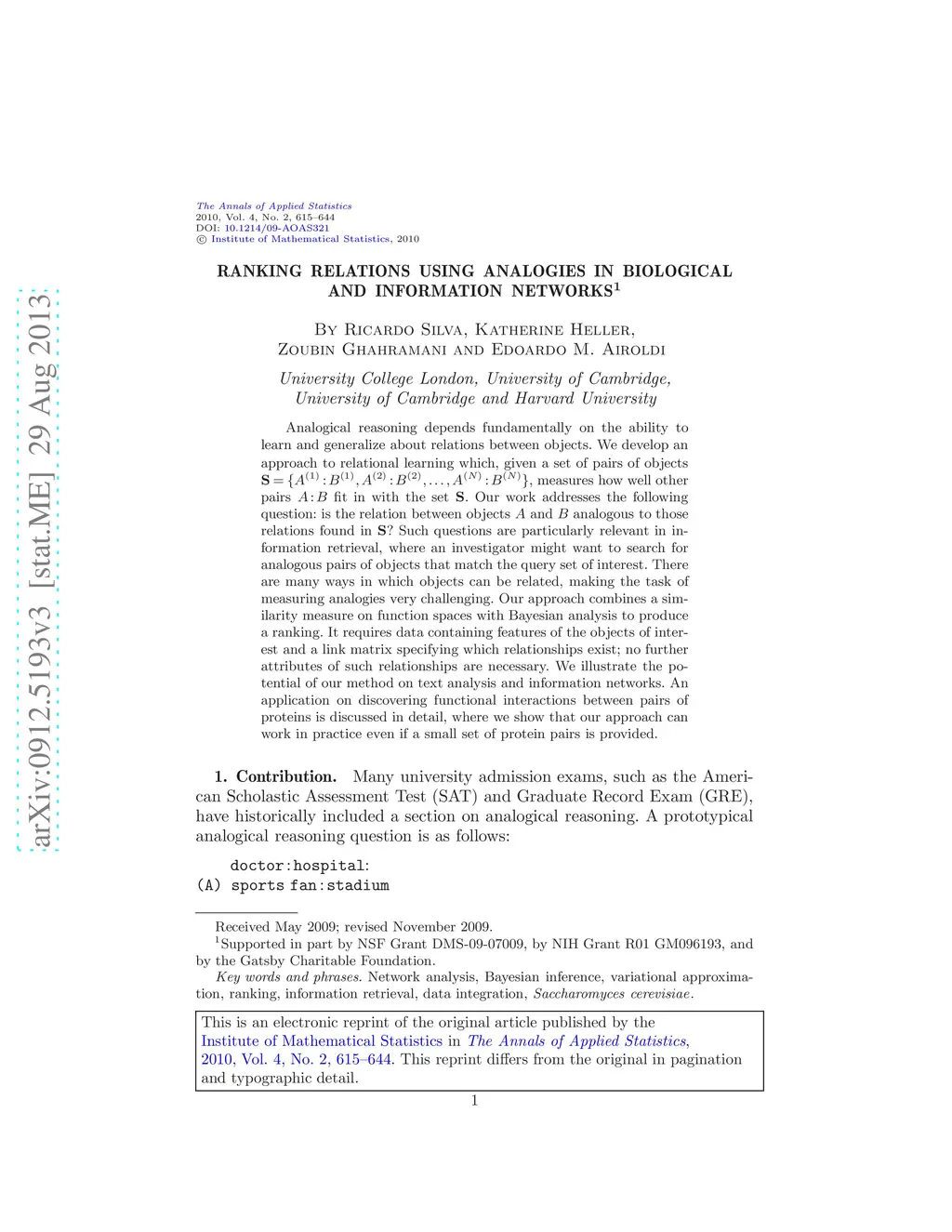 Ranking relations using analogies in biological and information networks