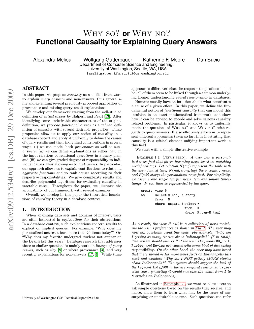 Why so? or Why no? Functional Causality for Explaining Query Answers