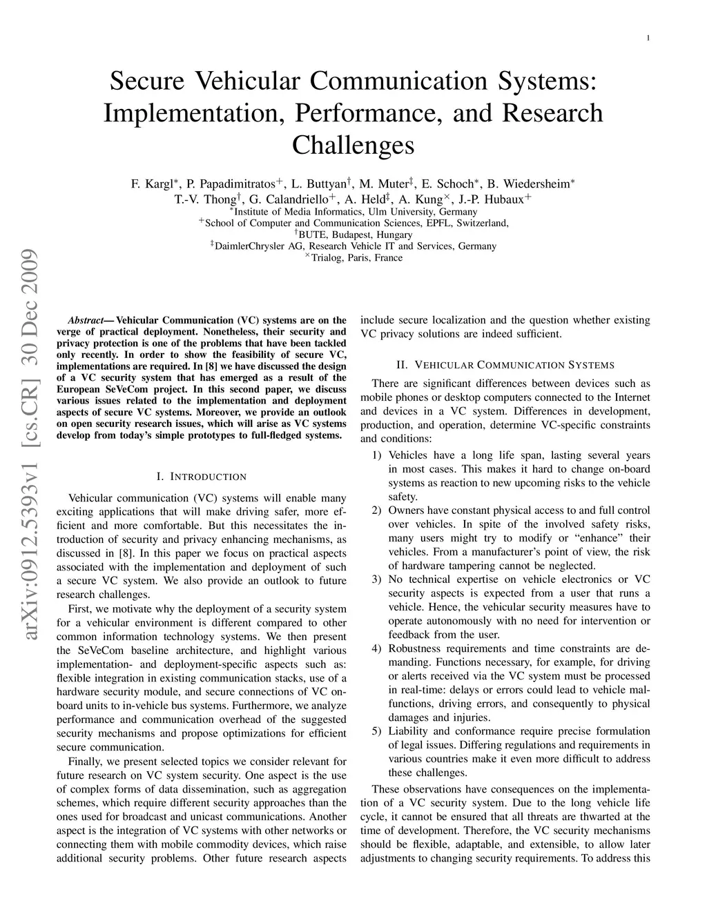 Secure Vehicular Communication Systems: Implementation, Performance, and