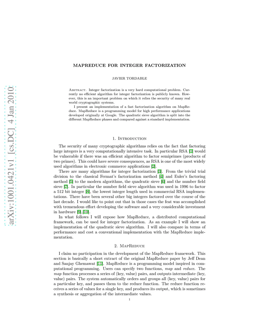 MapReduce for Integer Factorization