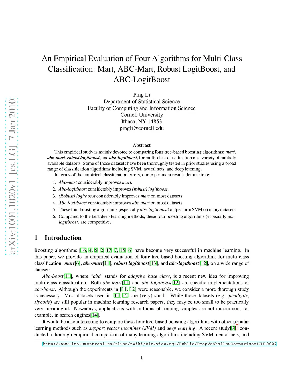 Classification: Mart, ABC-Mart, Robust LogitBoost, and ABC-LogitBoost