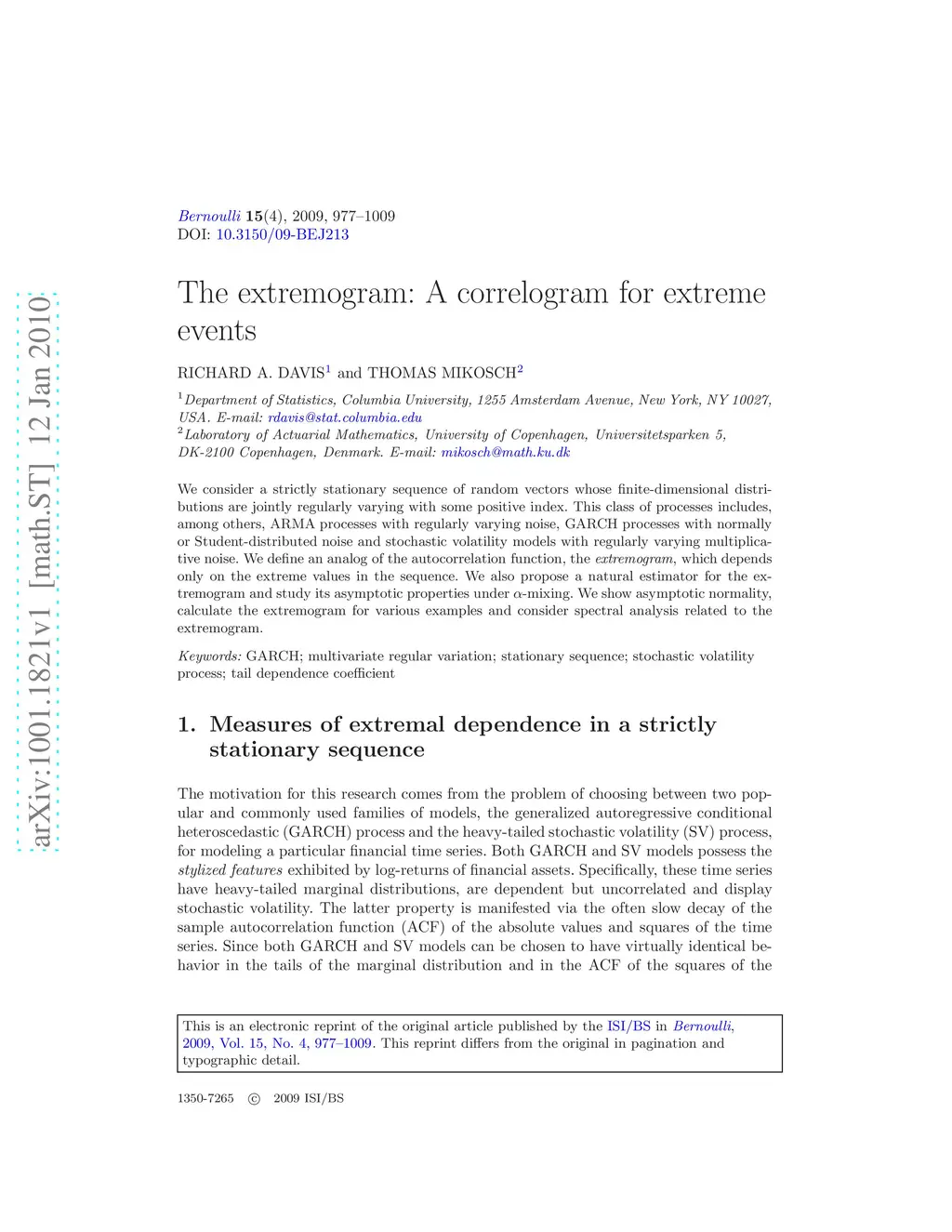 The extremogram: A correlogram for extreme events