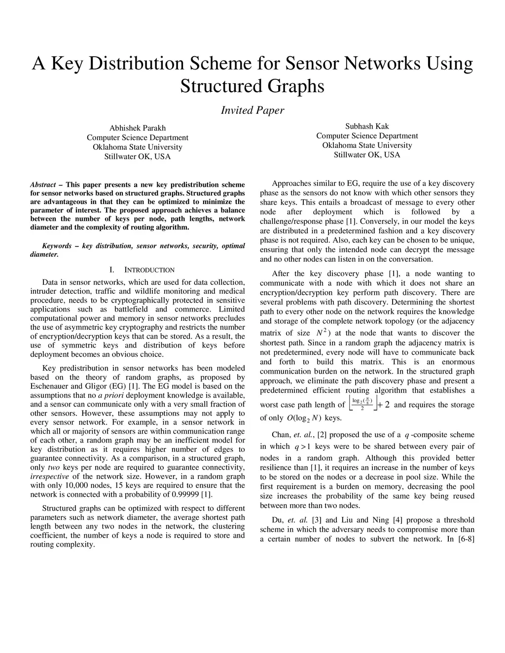 A Key Distribution Scheme for Sensor Networks Using Structured Graphs